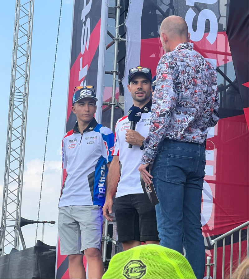 I was convinced that my luck for the rest of the day had ran out by missing Jack Miller and Brad Binder from KTM by a small margin and Augusto Fernandez and Pedro Acosta who were too focused on stage as the rookie impulsively decided to auction off his current shirt with a signature. That would be a bit of a weird thing to put my bet on but at least someone out there is enjoying it. That's until Pecco Bagnaia and Enea Bastianini came to auction their items. There was no way I could afford any of them but I came away from the day with a photo of me and the world champion, who again came around to sign everyone's things. Pecco is another one of my favourite riders too so I did in fact end the day with a photo of me and my top 3 riders!