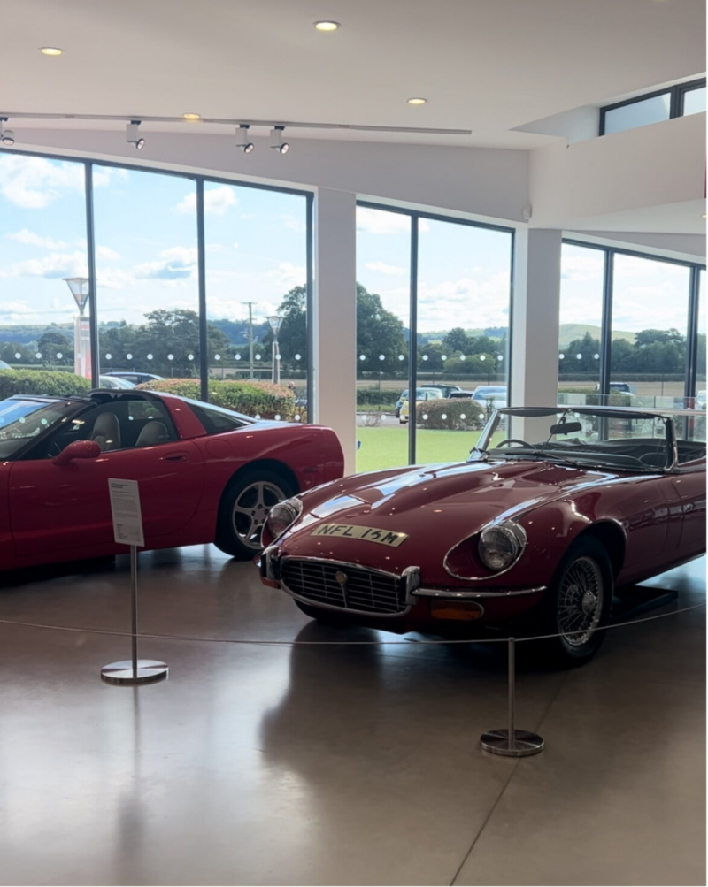 It turns out that 12:30 was the perfect time to arrive, and I guess missing out on our timeslot to get any sort of early lunch meant that we could enjoy what the museum had to offer so I opted for a very nice Cornish pasty and oat iced coffee. This is where you can totally appreciate the utter beauty of the entrance to the museum with various individual cars to sit in awe at, and the open plan interior made it seem even more beautiful.